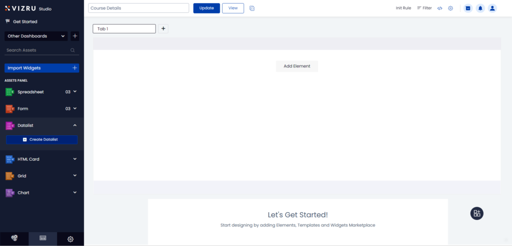 Note: The stable version of the datalist templates library is stored in apps.vizru.com. It can be imported to a tenant and customized for an app.