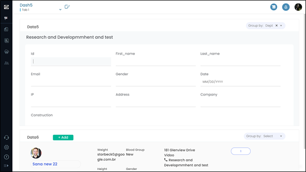 Select the field for grouping from the dashboard. The Add records button will be visible on the mouse hover.
