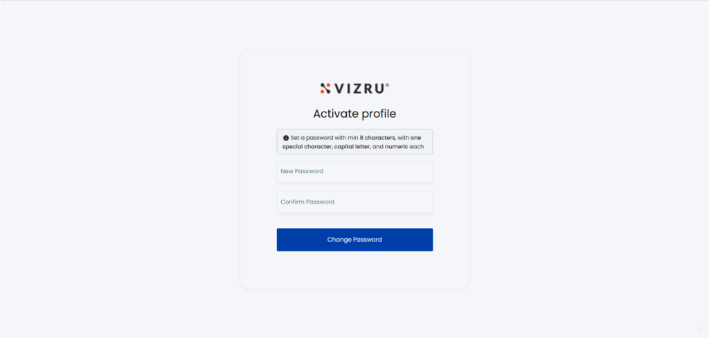 Note: Vizru strictly conforms to enterprise standards of login and password policies. When you click on the forgot password link, you will get an email with instructions and a link to reset the password.