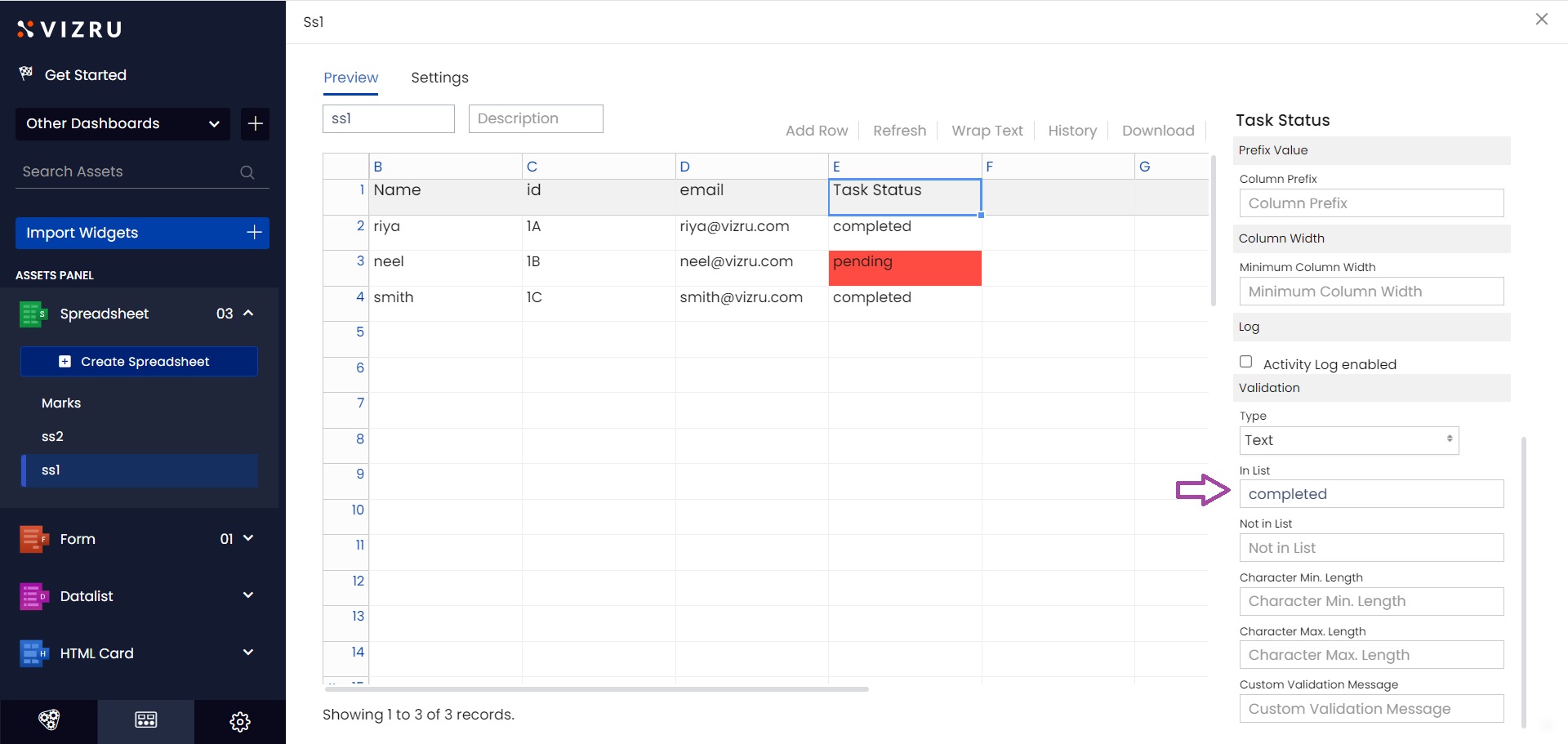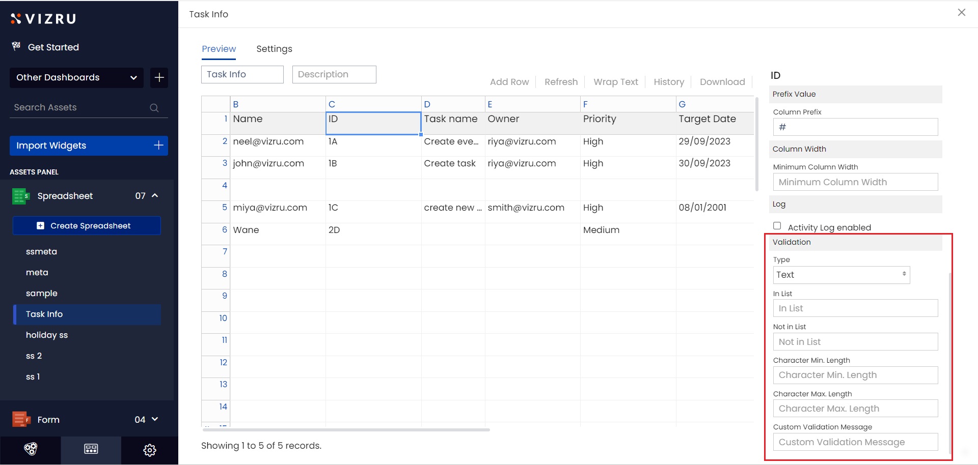 11. Validation: you can set certain rules for data in a specific column depending on the datatype of the column. For example, if string, text should be “yes/no”, should be of the form “a,b”, should not be of the form “a,b”, etc. If date, should be greater than or less than a specific date, etc. You can set character minimum and maximum length and also set a validation message.